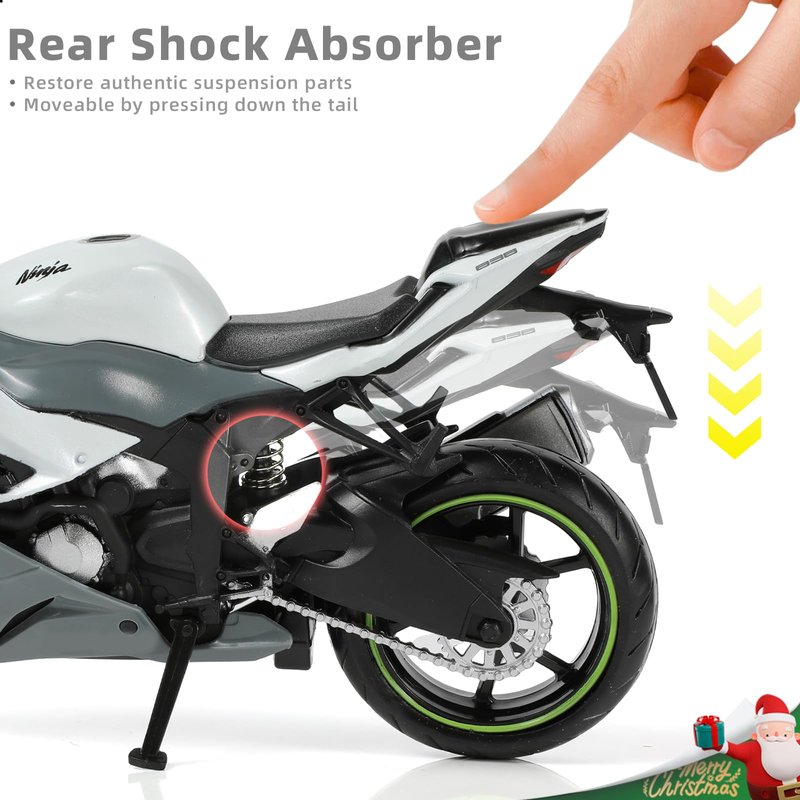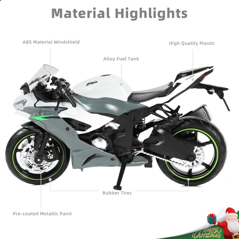- 【Material & Highlight】-The main body of the Kawasak motorcycle model is made of alloy diecast motorcycle model materials and high-quality plastics,the tire part is made of rubber.The intricate details such as rotatable support pedals, twistable front wheels also enrich the motorcycle toy's realism and appeal. This design not only ensures the excellent durability of the motorcycle model toy 1/12, but also enhances the overall authenticity and collection value of the 1/12 motor model toy.