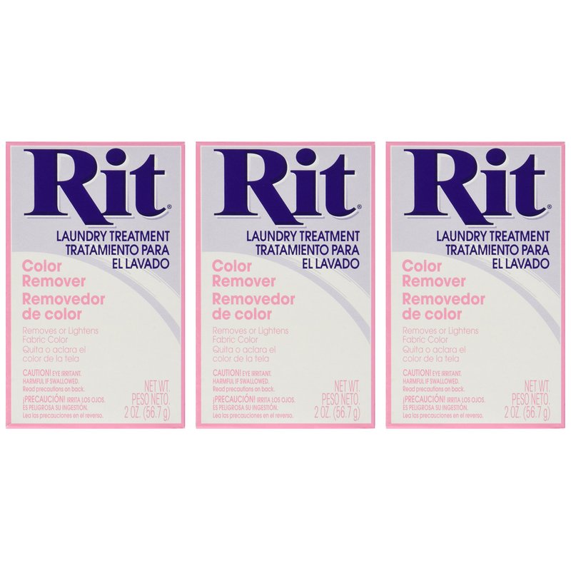 Rit Dye Color Remover Powder safely removes or lightens fabric color before dyeing. It's handy for removing dye stains from whites washed by mistake with colored items.