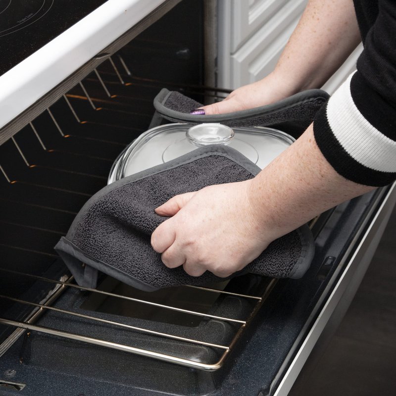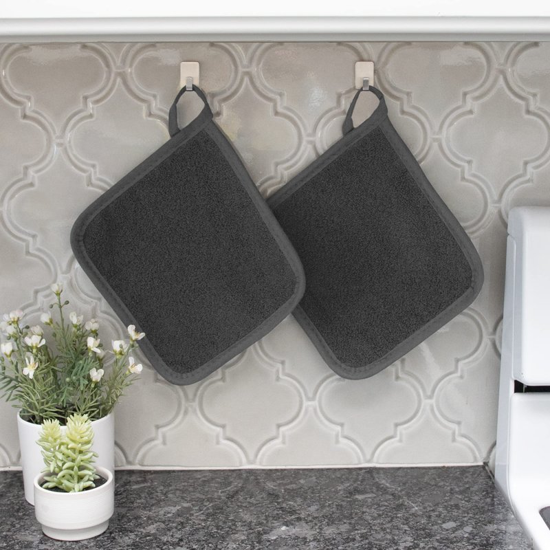 Ritz Terry 100% Cotton Potholders - Heat Resistant, Ergonomic Grip, Machine Washable - Graphite, 2-Pack
