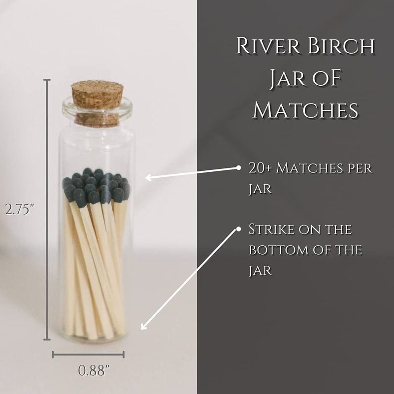 - Designer-level Home Decor: Elevate your space with River Birch's 6-pack of decorative matches presented in our signature jars with a stylish cork top. Each match holder features 20 safety matches and a match sticker on the bottom, providing you with +120 colored matches in total. Illuminate your surroundings with these chic wooden matches, a perfect match set for any occasion.