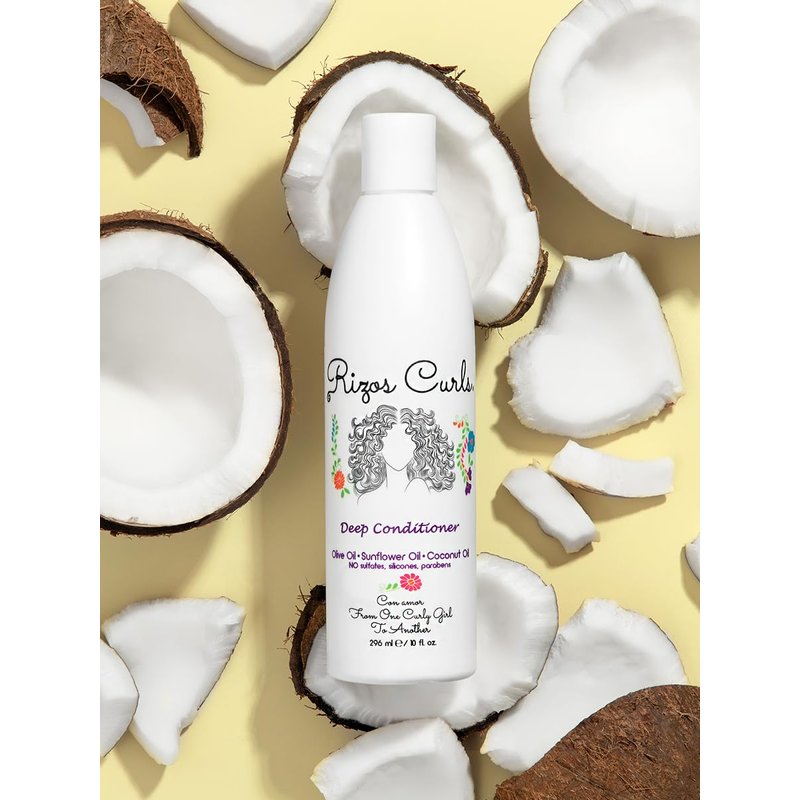 Rizos Curls Deep Conditioner, Strengthens & Moisturizes Hair while Controlling Frizz, Add Softness and Manageability with Coconut Oil, Sunflower Oil & Shea Butter, 10 oz