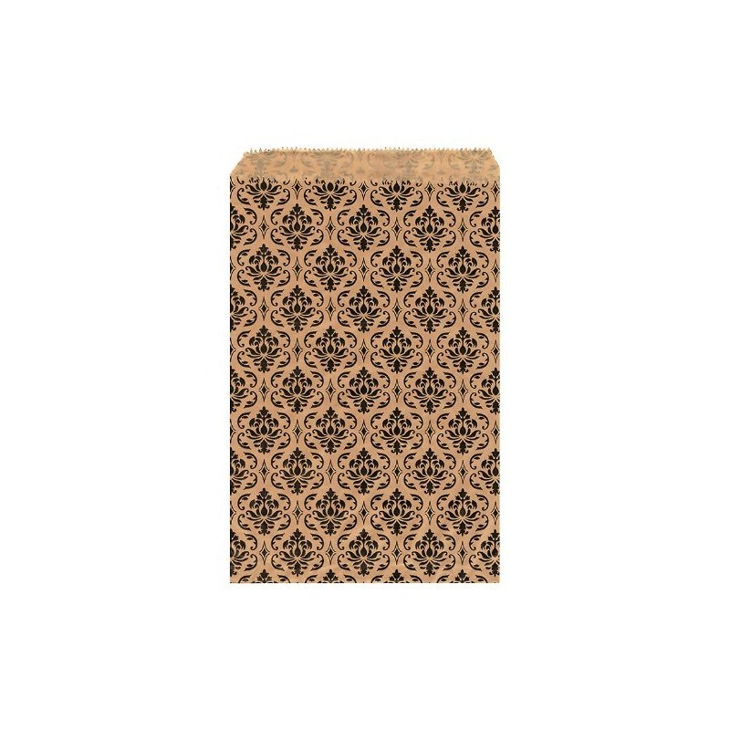 - Damask Black and Brown Paper merchandise bags have slight sheen