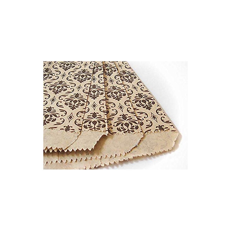 RJ Displays- 200 Pack Damask Brown Kraft Paper Bags, 4" x 6" inch for Candy, Cookies, Small Gift, Crafts, Party Favor, Cookies, Candy, Chocolate, Small Gifts, Sandwich, Jewelry Merchandise