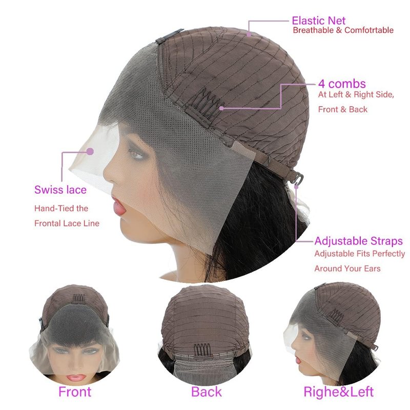- 【Lace Front Wigs Human Hair Pre Plucked Cap Size】 21"-22.5" Medium Cap (Average Size) with 4 Combs and Adjustable Straps, Durable and Easy to Adjust, Fit most Customers Head Perfectly. Giving You a more Comfortable Wearing Experience.