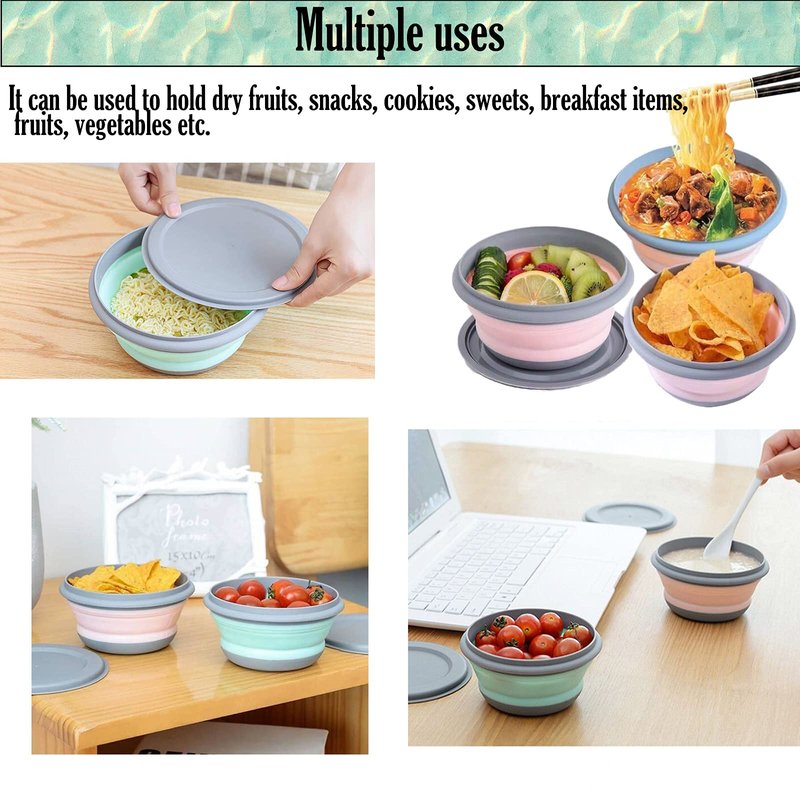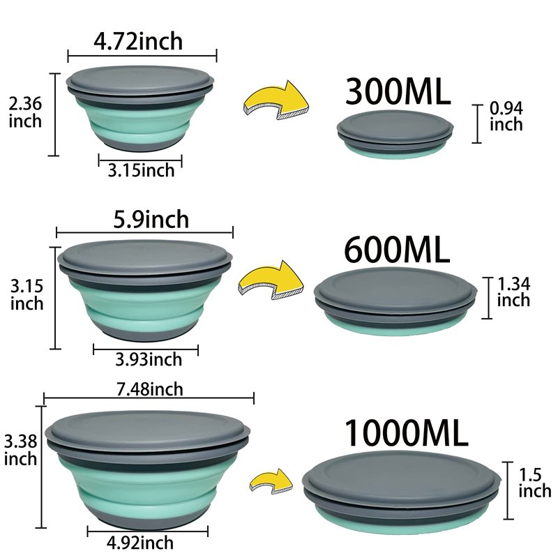 ----Perfect collapsible bowls set for lunch boxes, leftovers, take out or as meal prep container.