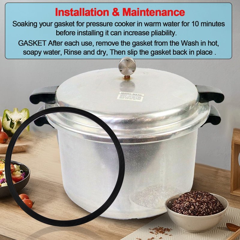- 【Simple to install 】: soaking your gasket for pressure cooker in warm water for 10 minutes before installing it can increase pliability.Cleaning the sealing ring groove thoroughly before installation. Insert the gasket and press it firmly into the groove.