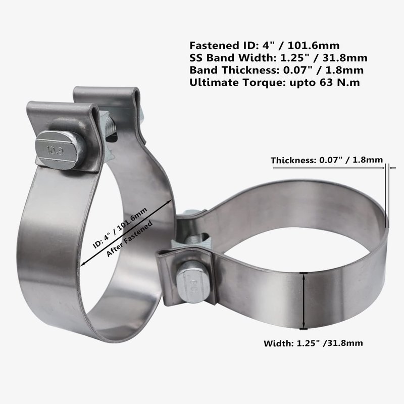 - This 4" exhaust clamp is made in Stainless Steel. Used to joint 4 inch OD pipe slip fit into ID pipe for connection. Two pieces included in a single pack