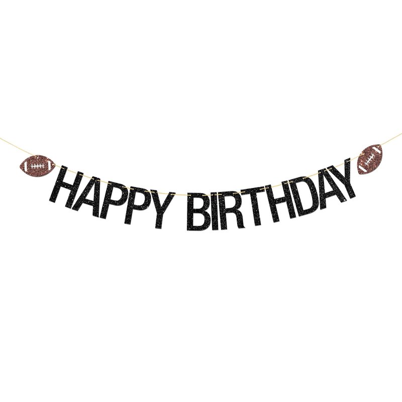 RoadSea Football Happy Birthday Banner - Sport Theme Football Player Birthday Garland Bunting Supplies - Football Enthusiast Birthday Party Decorations - Black Glitter