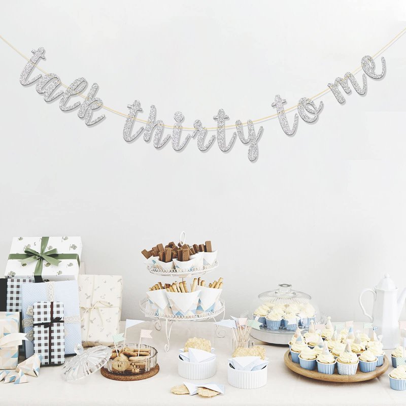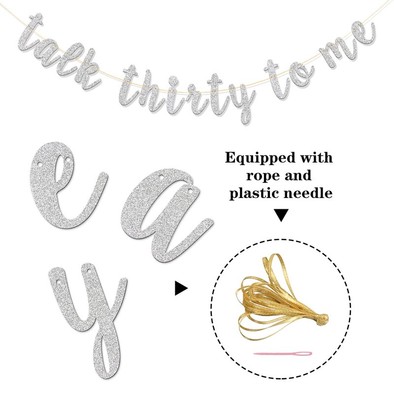 RoadSea Talk Thirty to Me Banner - 30th Birthday Party Garland Supplies- Thirty Birthday Party Decorations - Silver Glitter