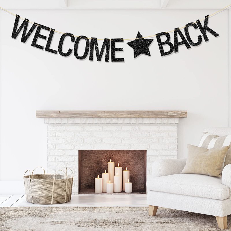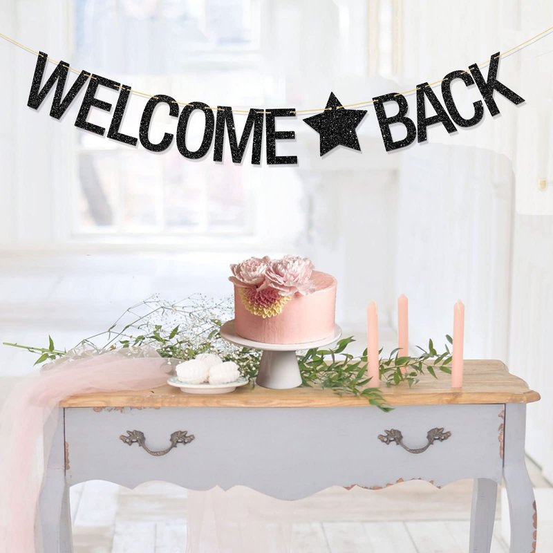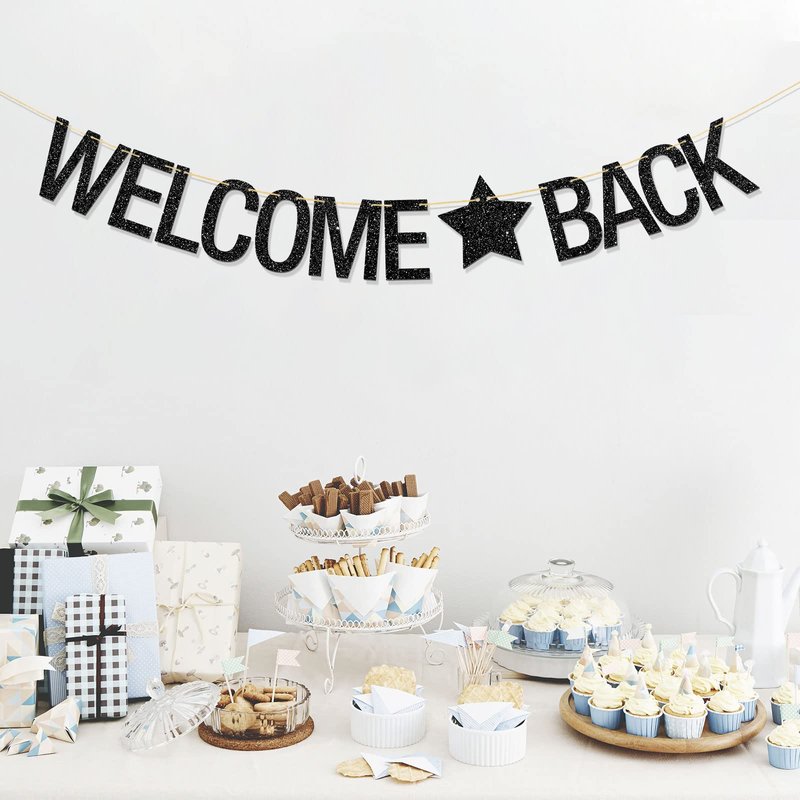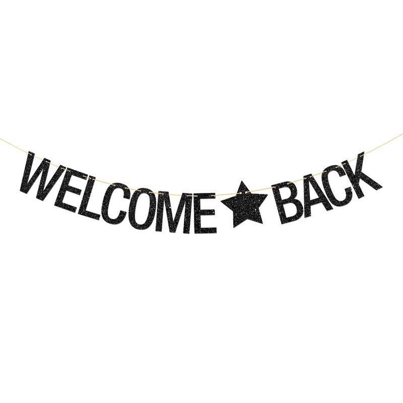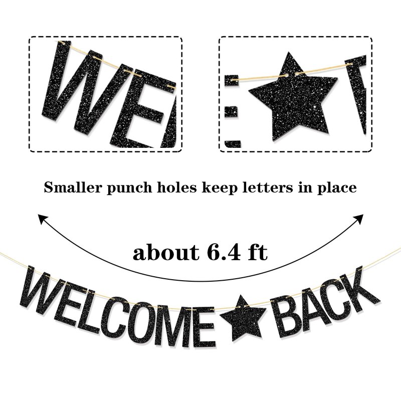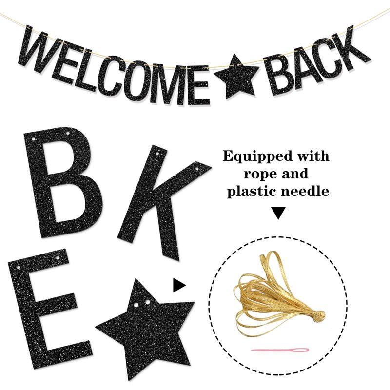 RoadSea Welcome Back Banner - Retirement Party Supplies - Welcome Home Party Decorations - Black Glitter
