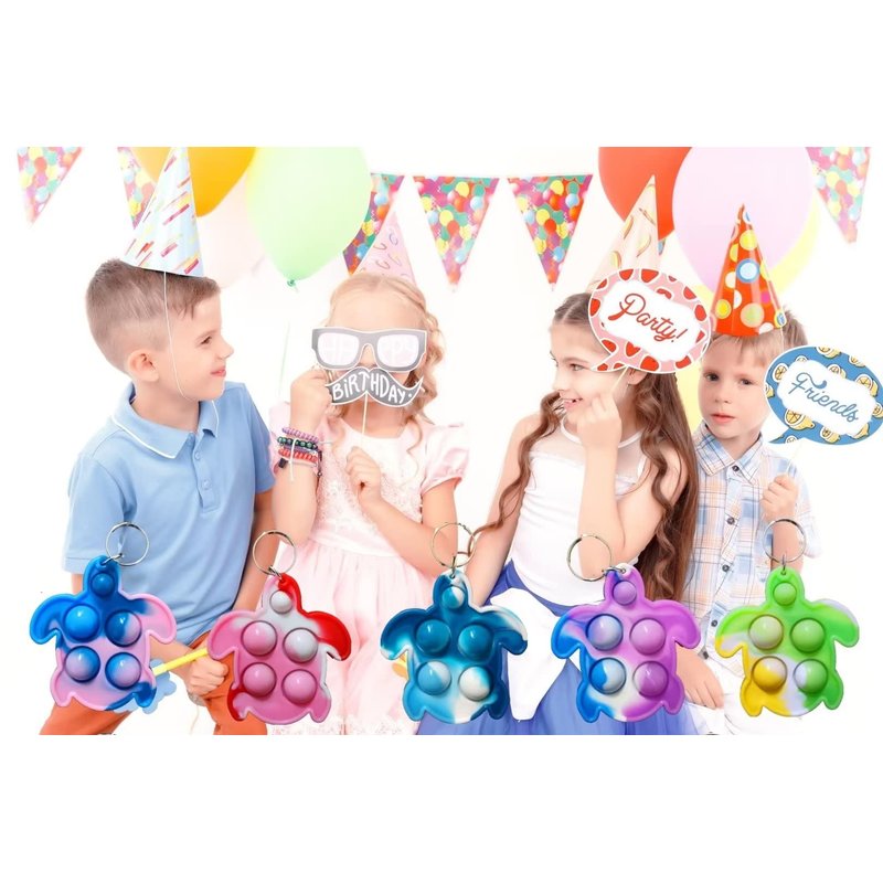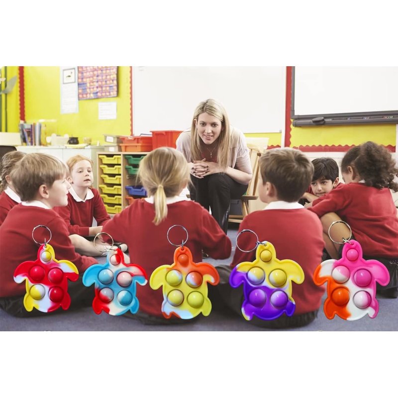 - 1,Made of silicone,Good quality,Plus Thick,So Thick that make powerful sound and keep bright Color,Package included:20 packs mini pop Turtle keychains,random color to send