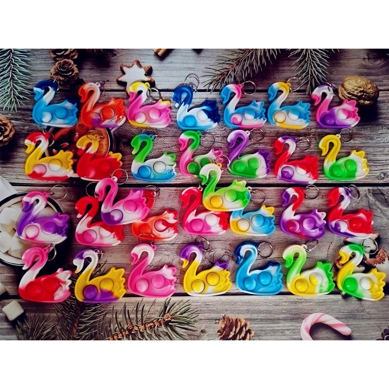 - 2,Made of silicone,package included:30 pcs mini pop swan key chains,Random color to send