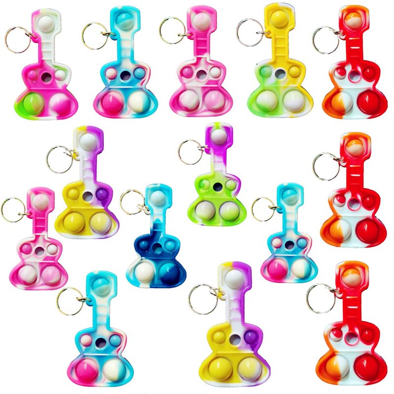 - 2,Made of silicone,package included:30 pcs mini pop Guitar key chains,Random color to send