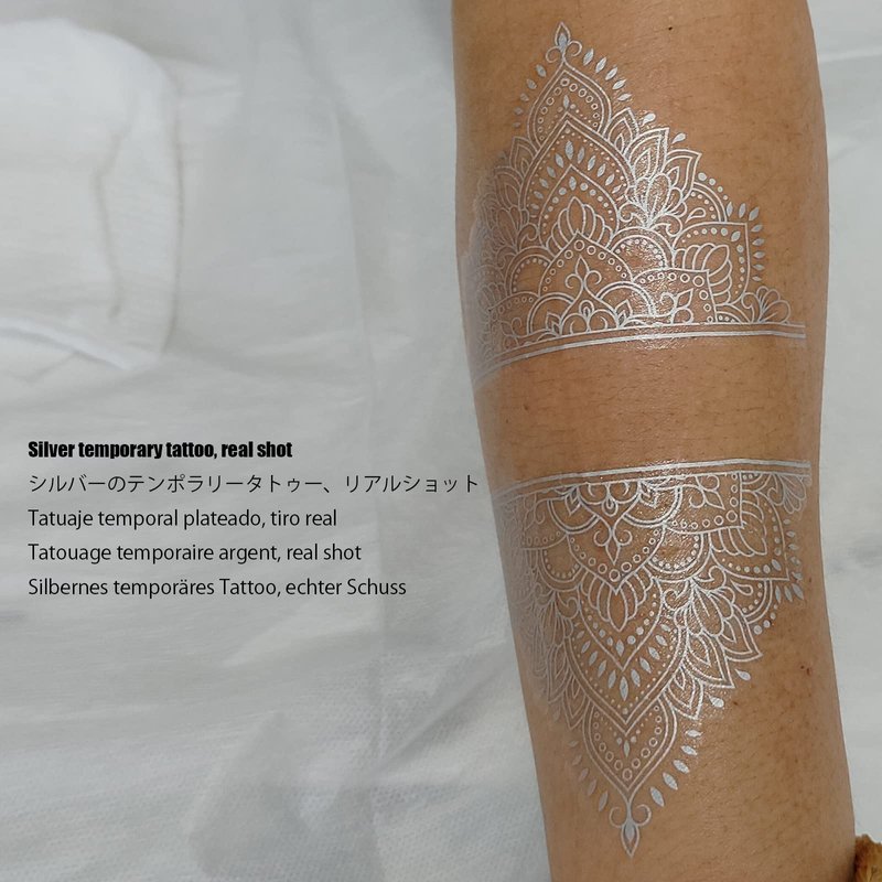 - Silver reflective temporary tattoos, a pack of 21 temporary tattoos in different patterns, these temporary tattoos for men and women,
