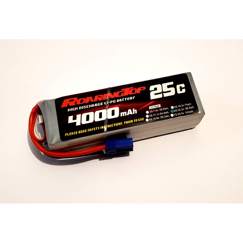 RoaringTop LiPo Battery Pack 25C 4000mAh 6S 22.2V with EC5 Plug for RC Car Boat Truck Heli Airplane