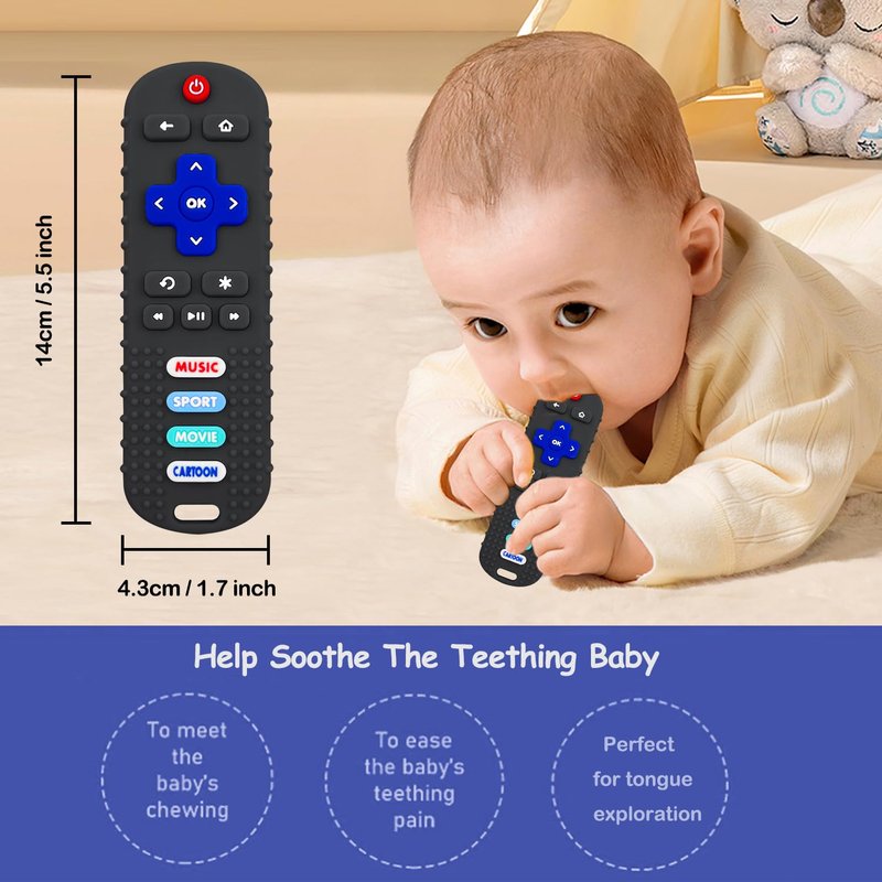 - [Adorable Design]: The remote control teether toy is perfect for those toddlers who loves playing with remote. Such a great replacement of the real TV remote. No more slobbery remotes! Comes with a TV remote shaped chew toy.