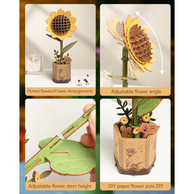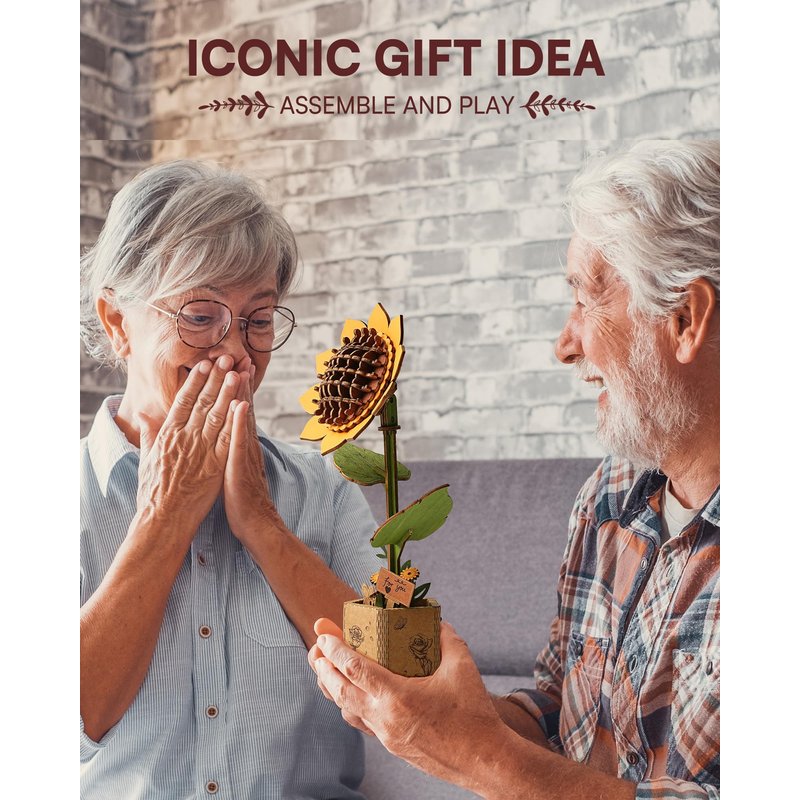 - 【ROBOTIME Model Flower Kit】Our Timeless Wooden Sunflower, with its exquisite details and pre-colored petals, radiates vibrant, lasting beauty in any room. Symbolizing enduring love and joy, these flowers never wilt, making them a perfect keepsake.