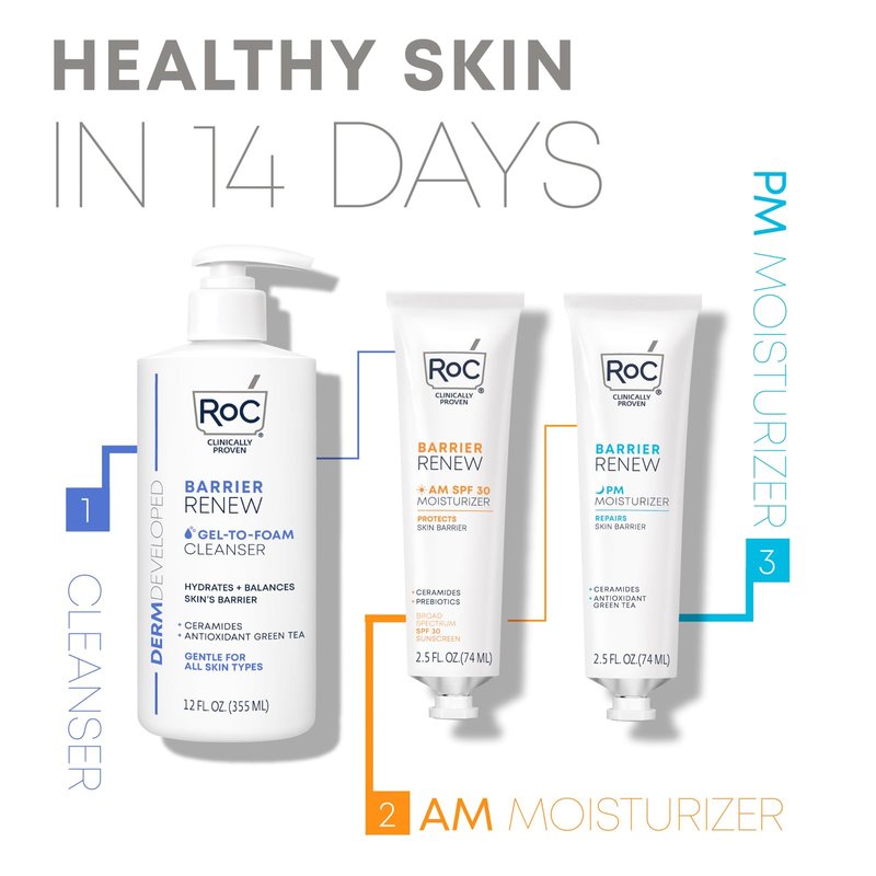 RoC Barrier Renew Day Cream with SPF 30, Moisturizer with Ceramides & Prebiotics to Protect Skin Barrier, (2.5 oz) with Retinol Eye Cream Packette