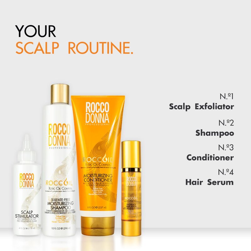 - Rocco Donna Professional's Scalp exfoliator removes dead skin cells, unclogging pores, and stimulating blood flow. Improving scalp health and hair quality.