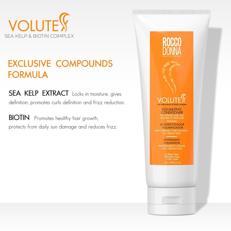 For Thickening and Volume to Fine Hair Hydrate and boost your hair with fullness and volume with our Volumizing Conditioner, infused with VoluteX Complex created with Sea Kelp and Biotin. Specially formulated for fine hair and for those who like big volume that lasts until your next wash. USE: After washing your hair with the Volumizing Shampoo, remove excess of water and apply from mid-length to ends, massage your hair and leave it for 1-3 minutes. Rinse thoroughly with cool - warm water. Sulfate Free Paraben Free Color Safe Net wt 8 oz.