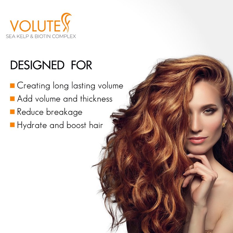 - Volutex Complex: An exclusive complex created to add fullness and volume to hair from roots to ends. Infused with sea kelp and biotin