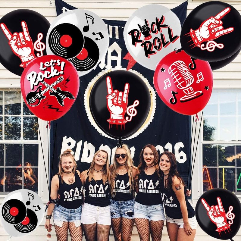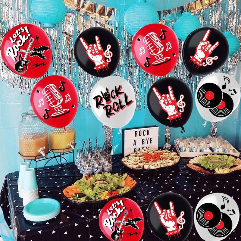 - Rock and Roll Party Decorations Set:30 Piece,12-inch rock theme pattern balloons, basically different colors corresponding to a character pattern, very cool!