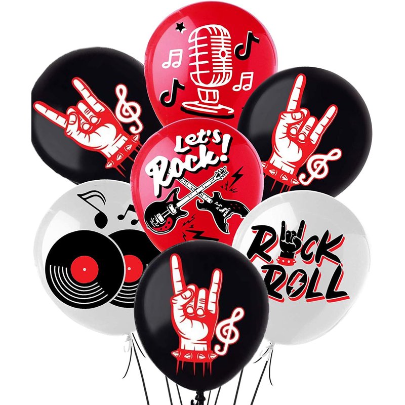 - Rock Party Balloons Package: 6 style diffreent pattens,with red ,black,white latex balloons,all 30 piece rock latex balloons.Balloons Notice: there will be a unique smell of latex, put it in the ventilated place for 1-2 days and it would be better.