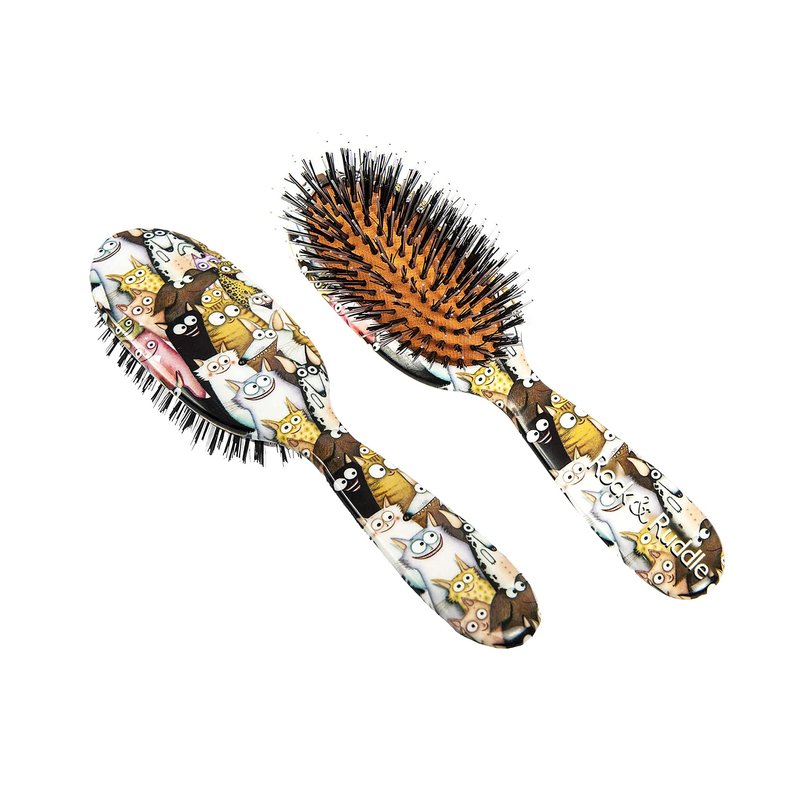 Rock & Ruddle Natural Mixed Boar Bristle Hair Brush for Women and Kids (Small/Travel Size, 17.5cm) - Perfect for Wet or Dry Hair, Detangling Smoothing Blowdrying - Made in UK - Cats & Dogs Design