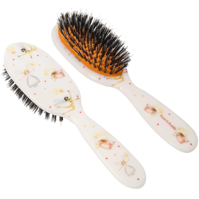 Rock & Ruddle Natural Mixed Bristle Hair Brush for Women and Kids (Small 6.9") - Perfect for Wet or Dry Hair, Detangling Smoothing Blowdrying - Designed & Made in UK - Fairies Design