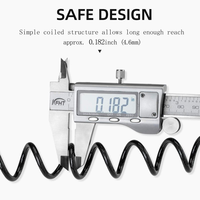 - Security Design: Good quality metallic helmet lock, thickened with PVC coating to 0.182inch/4.6mm in diameter, anti-theft and preventing scratches. Of course, as a simple anti-theft deterrent, the motorcycle helmet locks are worth having for more security.