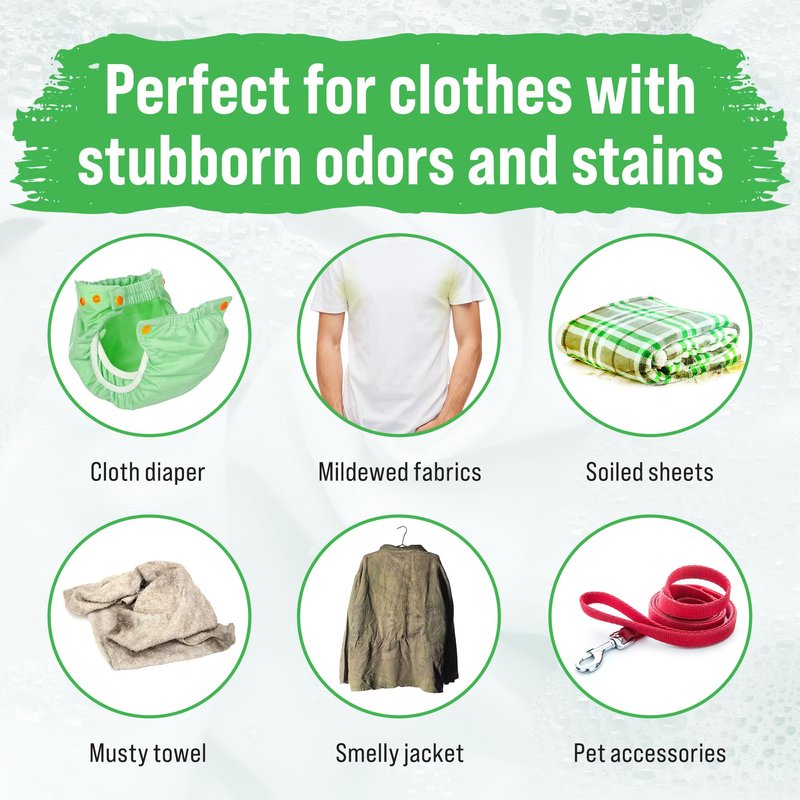 - Powerful Odor Eliminator - Say goodbye to stubborn stinky build-ups with our laundry odor eliminator for clothes! Rockin Green Funk Rock is a deep-cleaning plant-based laundry soap powder that targets nasty biological stains and odors at the source for towels, sheets, clothes, and cloth diapers.