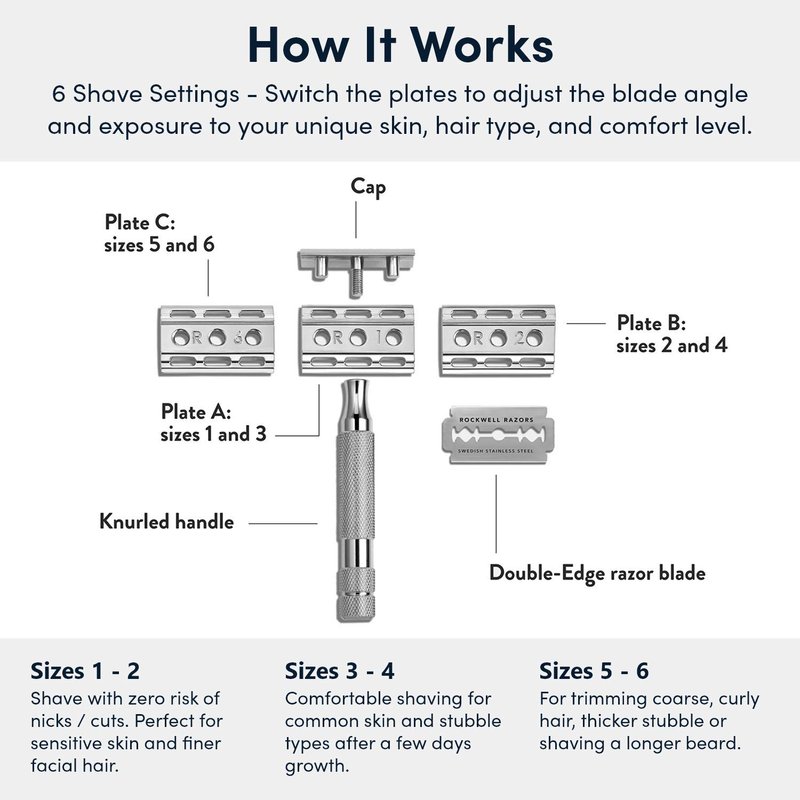 - Rockwell 6C safety razor is perfect any man or woman shaving their face, head or sensitive areas and comes with a beginner setting that makes it impossible for users to cut themselves while shaving