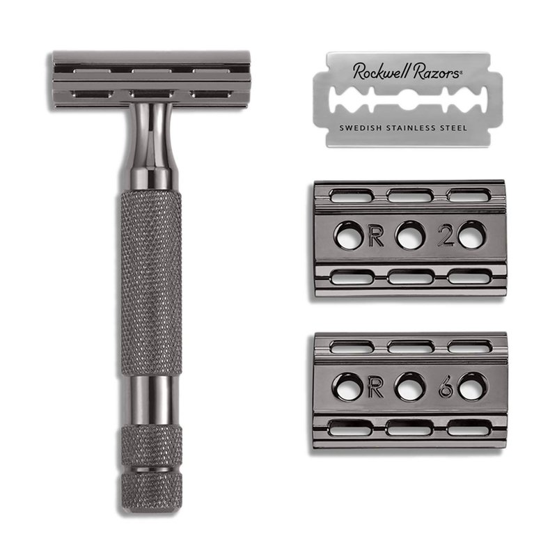 ROCKWELL RAZORS 6C Gunmetal Chrome Double-Edge Safety Razor with 6 Adjustable Shave Settings and 5 Blades