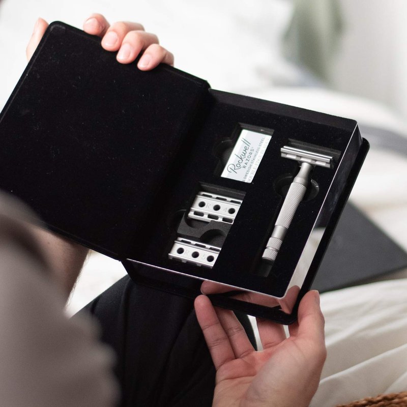 ROCKWELL RAZORS 6S Stainless Steel Double-Edge Safety Razor with 6 Adjustable Shave Settings and 5 Blades, 8 Piece Set, Silver