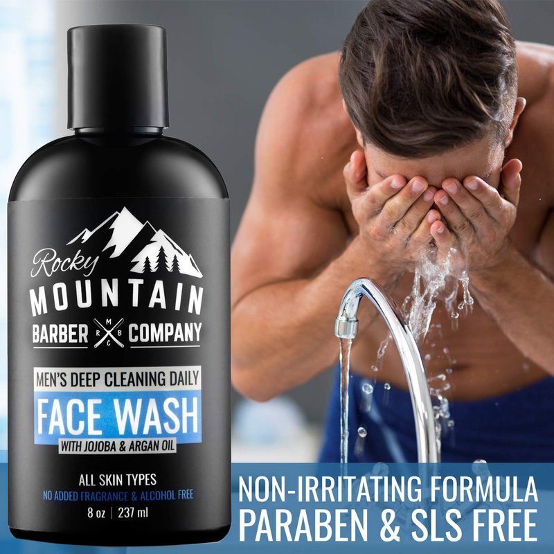 Rocky Mountain Barber Company Men's Daily Face Wash - With Jojoba Oil, Argan Oil, Chamomile Floral Water and Aloe Vera – Unscented - 8 oz