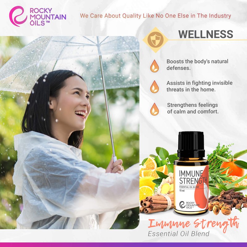 Rocky Mountain Oils Immune Strength Essential Oil Blend - 100% Pure and Natural Essential Oils for Diffuser, Topical, and Home - 15ml