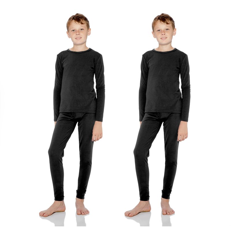 Rocky Thermal Underwear For Boys (Long Johns Thermal Set) Shirt & Pants, Base Layer w/Leggings/Bottoms Ski/Extreme Cold (Black - Small) 2 pack