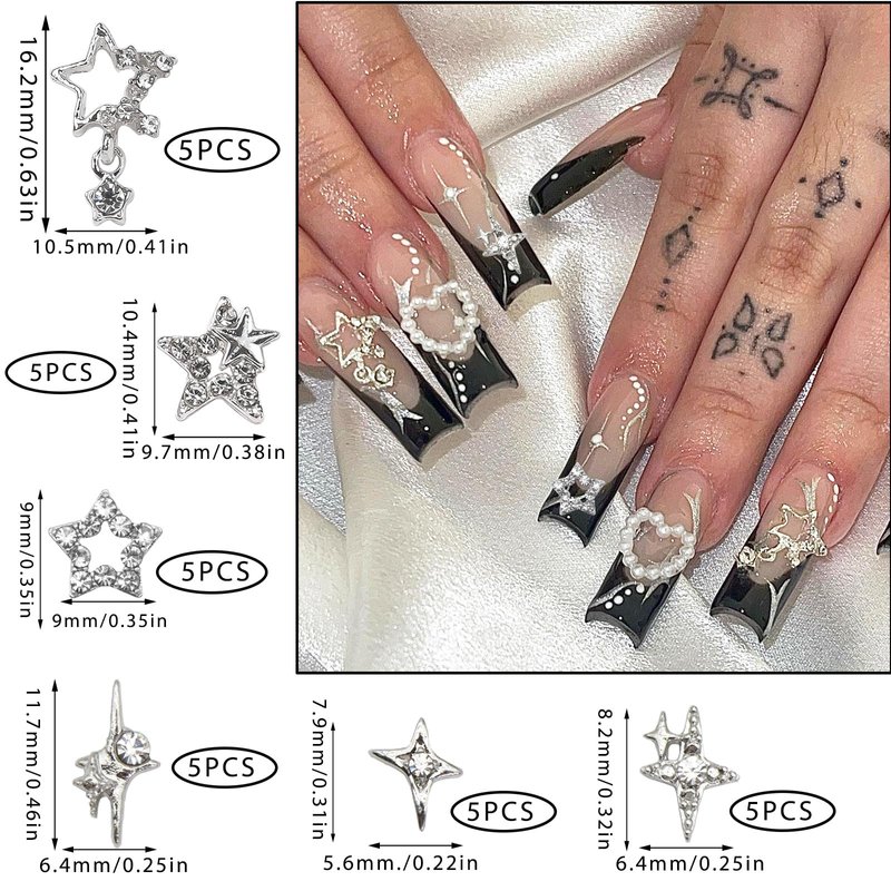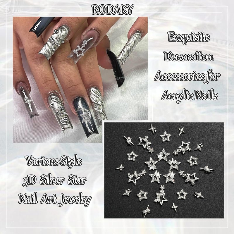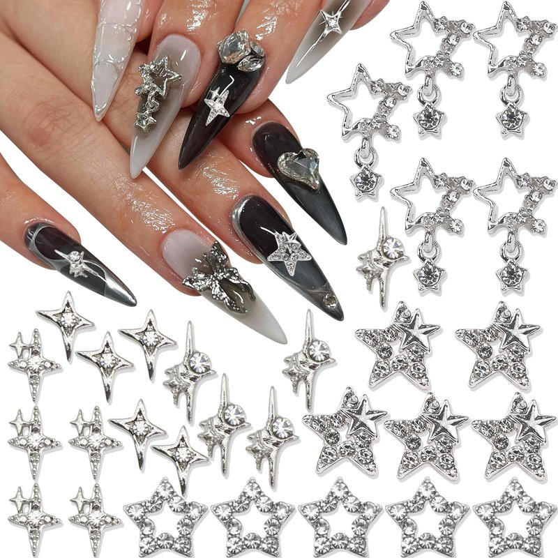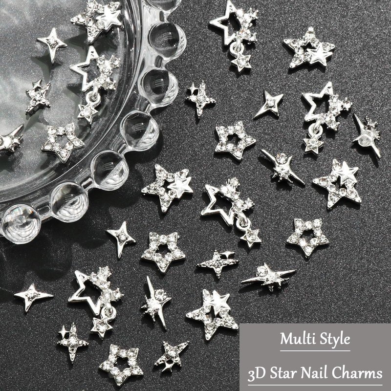 - Package Contains:30Pcs silver star nail charms you will get.Exquisite nail decoration with multiple design can make your nails looking different,more eye-catching and charming.Enough quantity can satisfiy your different needs,not only for nail art diy but also for crafts decoration.