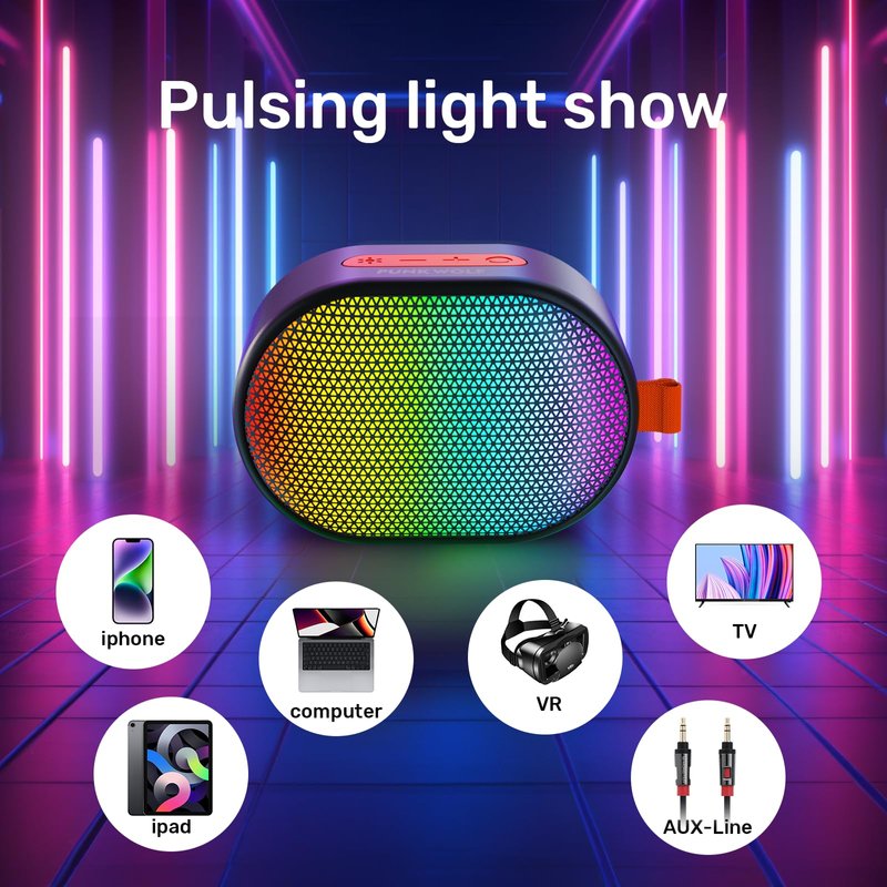 ROFALL Bluetooth Speakers Portable, Wireless Speaker with RGB Lights, HD Sound, 5 Watts, Compact Size, Dual Pairing, TWS, Waterproof, Suitable for Mobile Phones, Tablets and Laptops