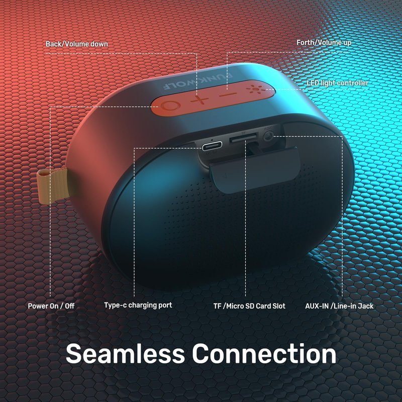 - 🎵Bluetooth Connection: Bluetooth 5.3 technology has a better and stable signal and high transmission rate ensure the reliability. Support TF card, AUX. Bluetooth speaker supported to connect with all iOS Android devices, phone, computers, Macbooks, MP3 players, etc.