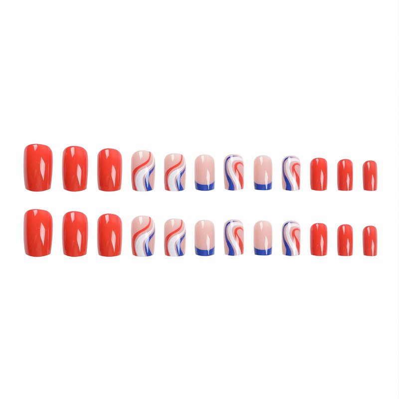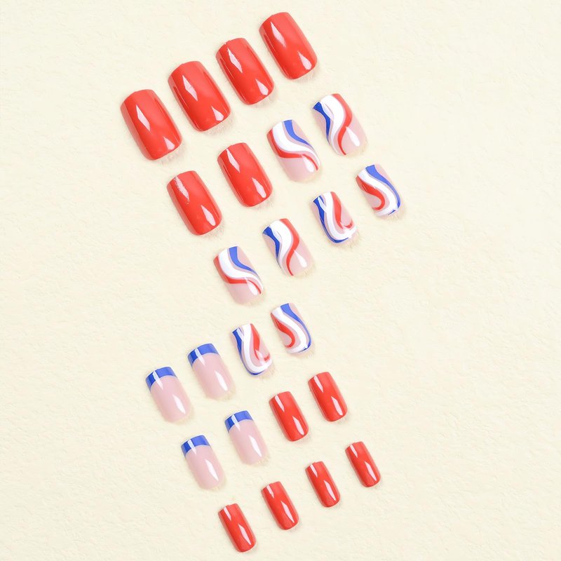 - 【Soft & Flexible】Made with soft gel, our glossy Independence Day false nails are gentle on your nail beds and feel like real nails. They fit the nail bed with a seamless cuticle line.