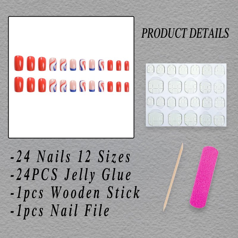 - 【Package Included】24pcs glossy red blue french false nails, jelly glue, a wooden stick. (Jelly glue makes the false nails reusable. Please use suitable glue according to different scenes.)