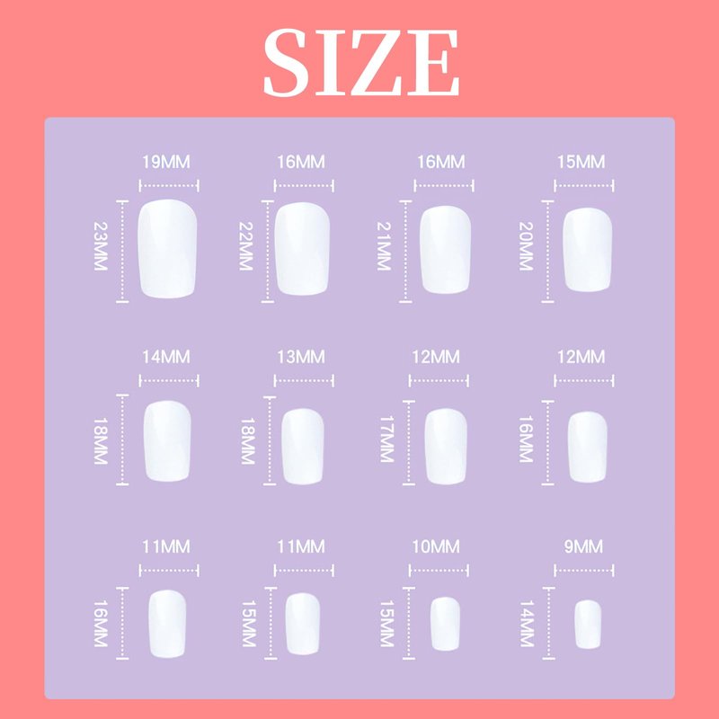 - 【Full Compliance Sizes】Our press on acrylic nails has 12 different sizes of false nails, no matter what your nail size is, you can choose the most suitable static nail for yourself.