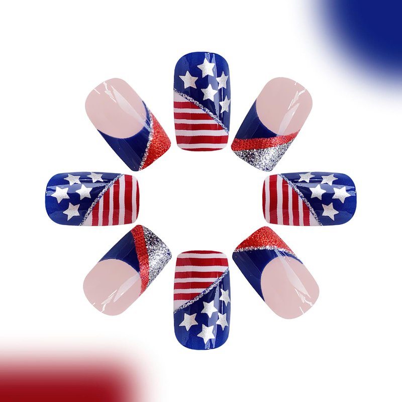 - 【Soft & Flexible】Made with soft gel, our glossy Independence Day false nails are gentle on your nail beds and feel like real nails. They fit the nail bed with a seamless cuticle line.