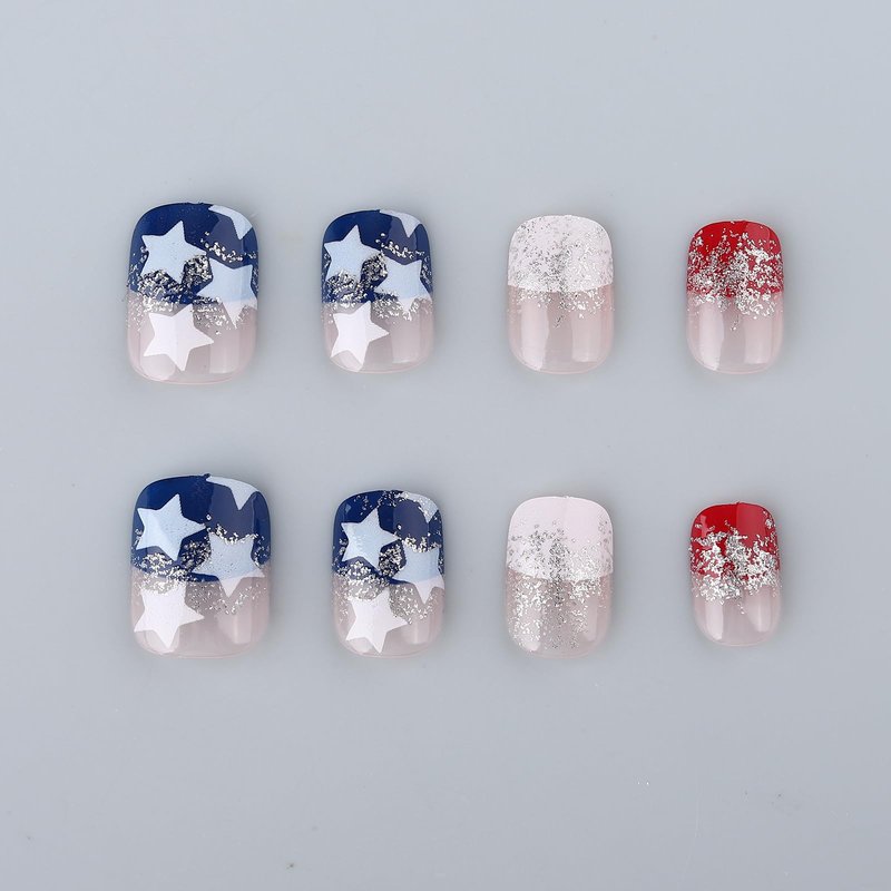 - 【Soft & Flexible】Made with soft gel, our glossy Independence Day false nails are gentle on your nail beds and feel like real nails. They fit the nail bed with a seamless cuticle line.