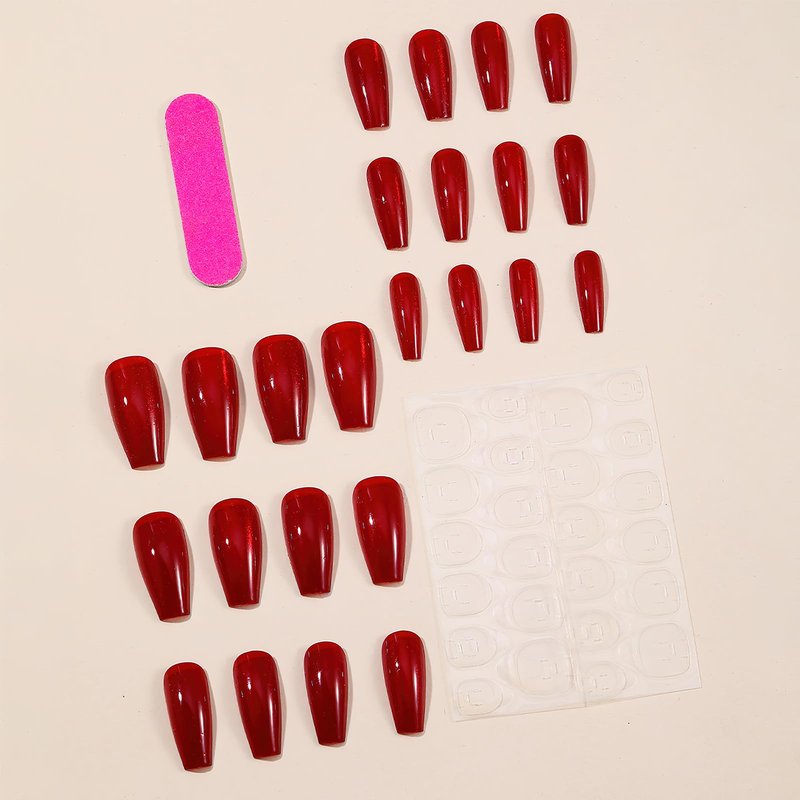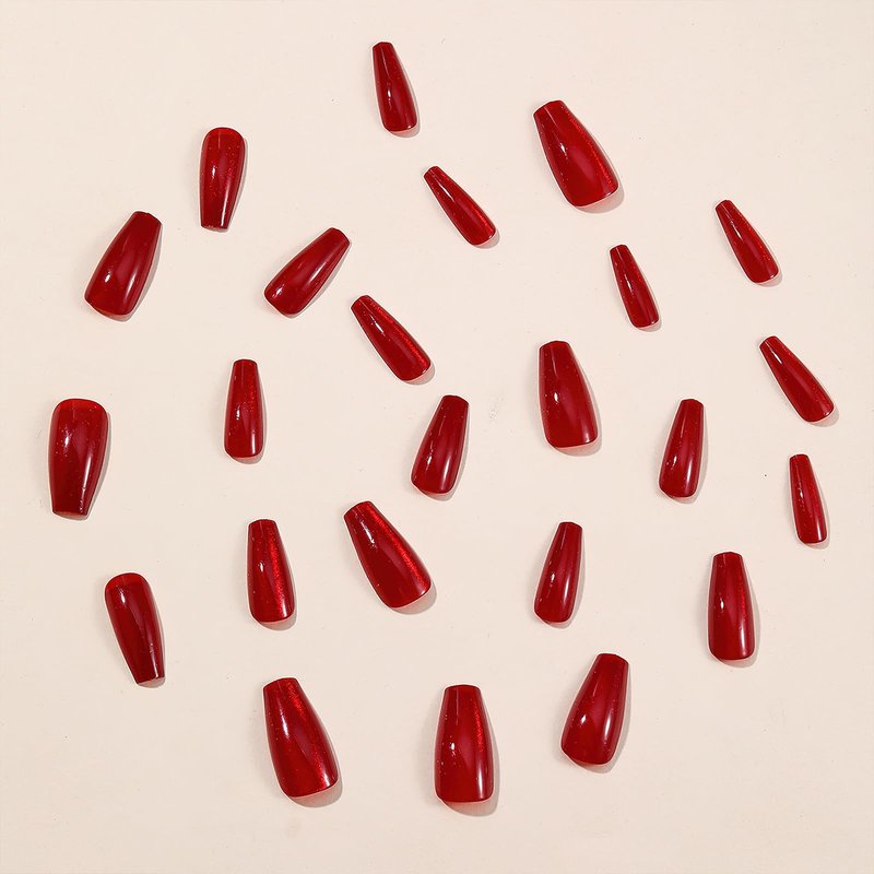 - 【Package Included】24pcs long square red cat eyes false nails, jelly glue, a wooden stick. (Jelly glue is not as durable as liquid glue, but it makes the false nails reusable. Please use suitable glue according to different scenes.)