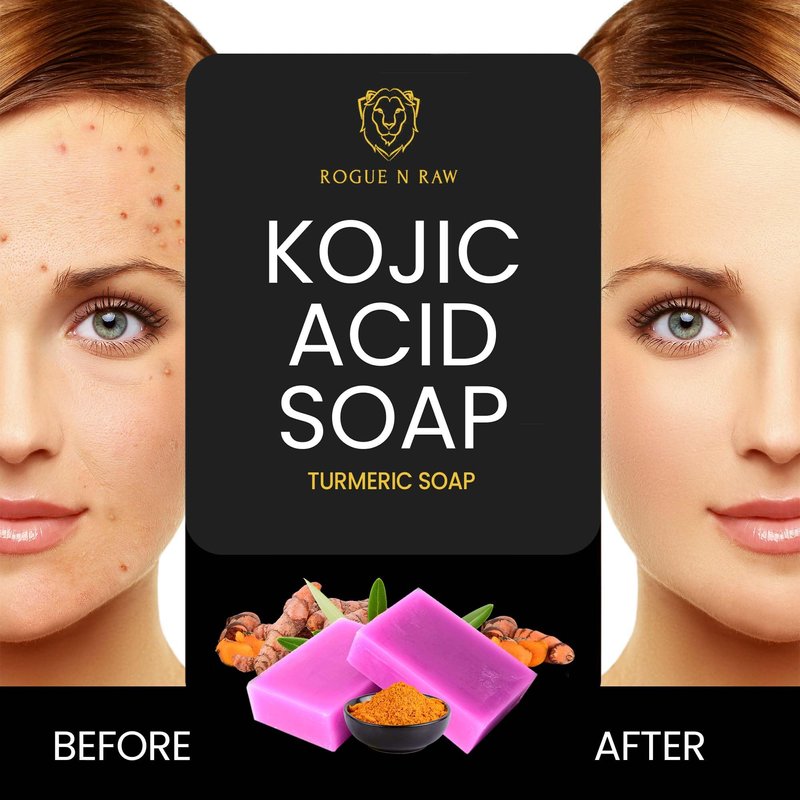 Rogue N Raw Kojic Acid Soap – Pure Turmeric Soap Bar for Face & Body, Brightening Skin Lavender Soap with Vitamin C and E, 2 Pack Turmeric Face Wash 100G - for all Skin Types