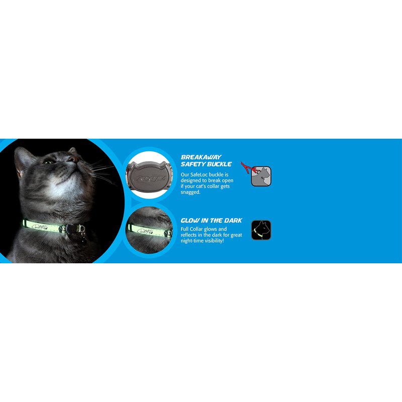 Rogz Glow in the Dark Reflective Cat Collar with Breakaway Clip and Removable Bell, fully adjustable to fit most breeds, Blue Floral Cat Design