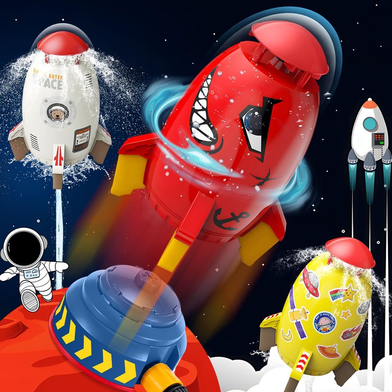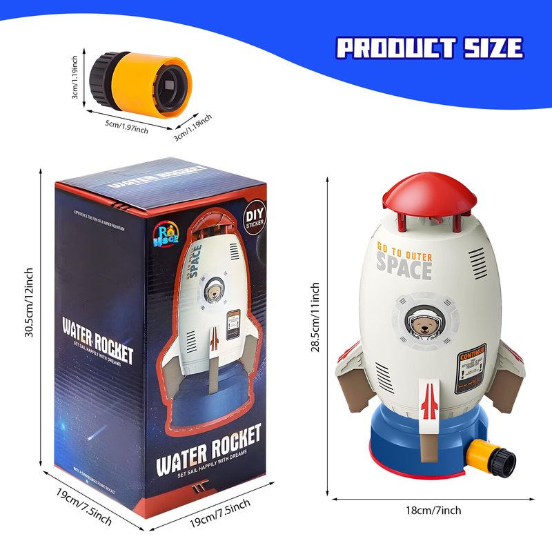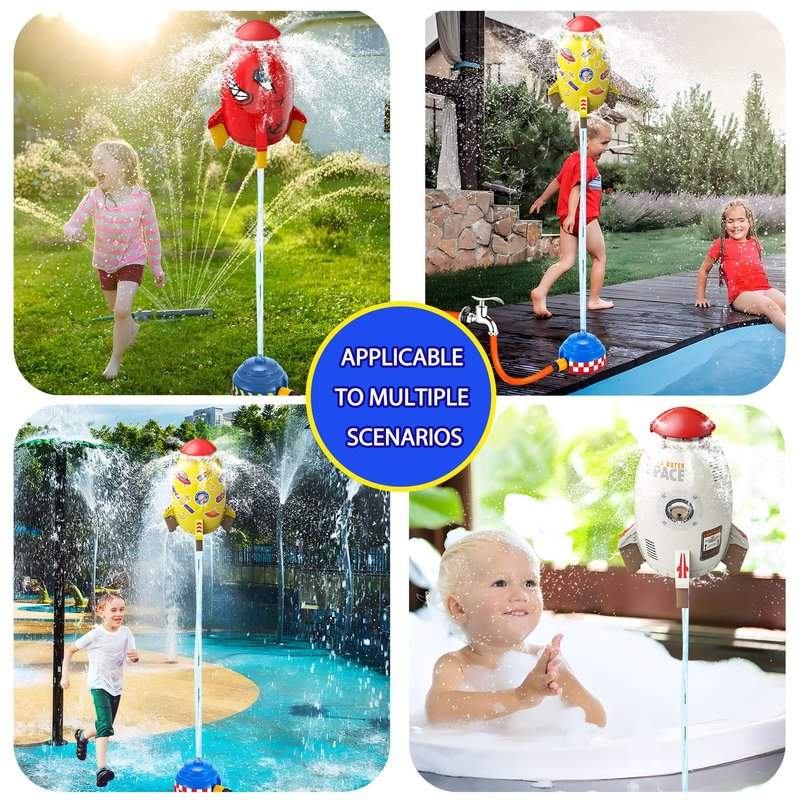 - 🚀Best Summer Toy for Kids: Get ready for endless fun and excitement with our outside water toys! Perfect for beating the heat, this water sprinkler for kids outdoor play will make a splash at any backyard party. Its out-of-this-world rocket water sprinkler design captures toddlers' imagination, while the colorful details and space-themed stickers make it truly special.