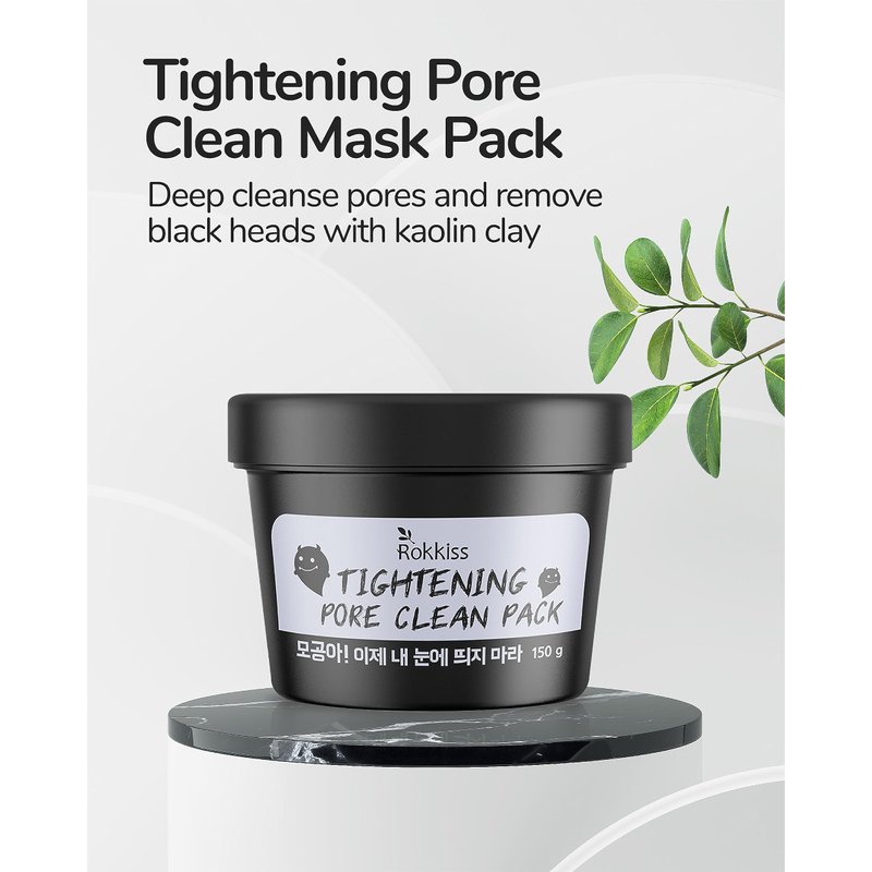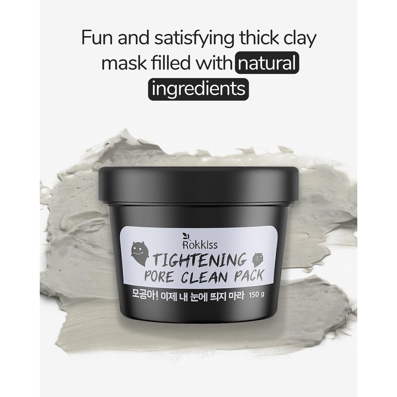 - ROKKISS PORE TIGHTENING CLEANING MASK PACK (5.3oz) - Experience the power of kaolin clay and bentonite in this mask pack, as they work together to effectively tighten and minimize the appearance of pores.